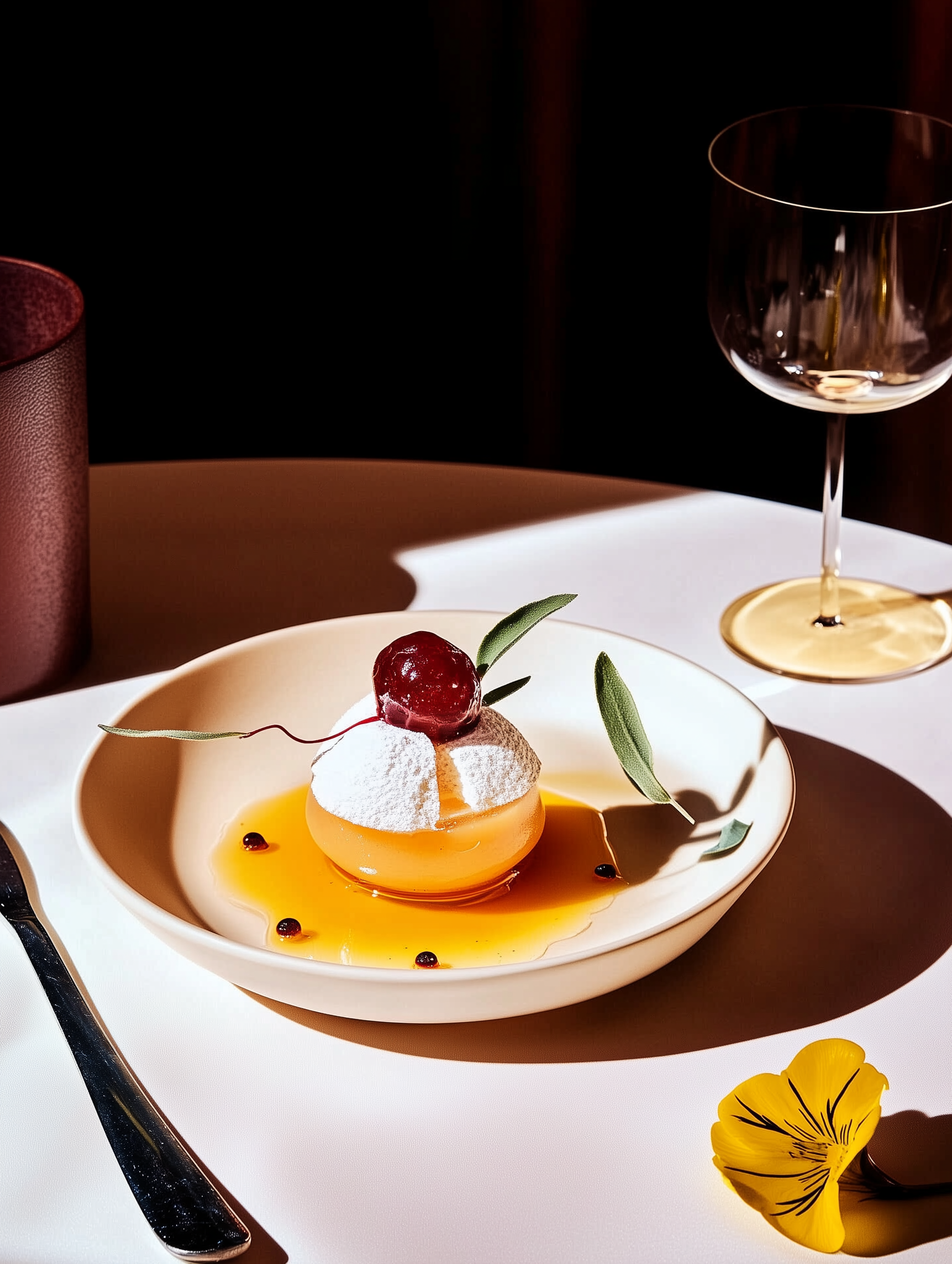 “Acquerello” rice infused with bright citrus, paired with sea urchins and a whisper of licorice powder for a unique flavor profile.